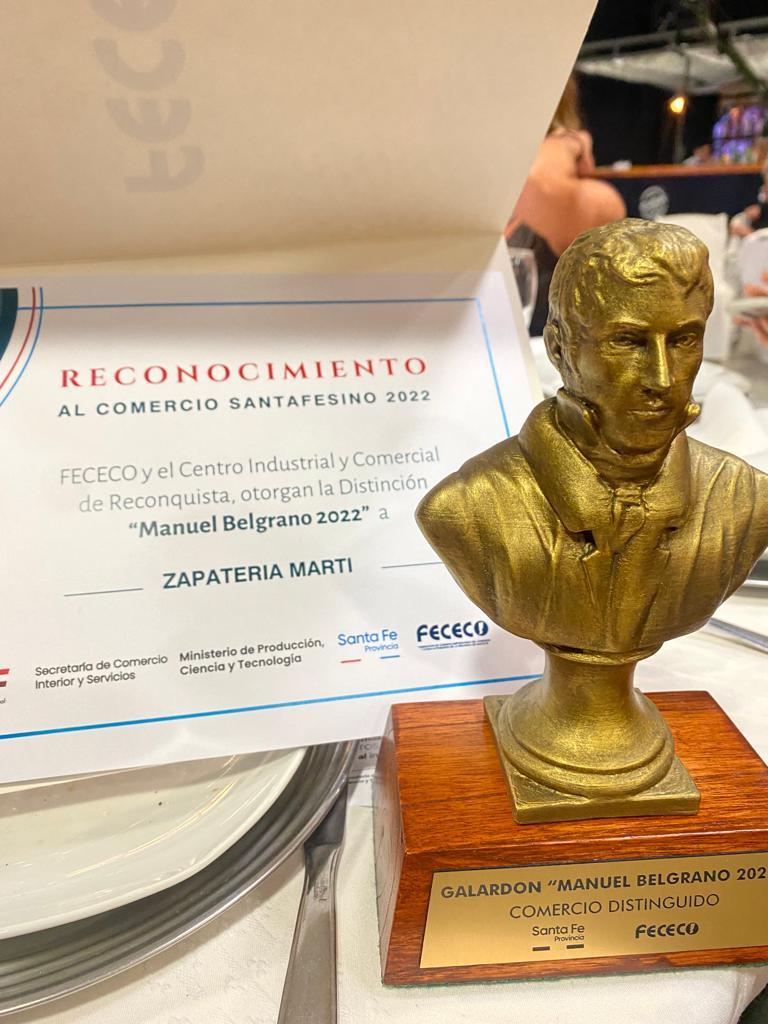 El Centro Industrial y Comercial de Reconquista designó al comercio “Zapatería Marti” para recibir este galardón en la edición 2022, y fue María Paula Marti, la nieta de Don Juan, su fundador, quién asistió a recibirlo, acompañada por autoridades de la Institución.
